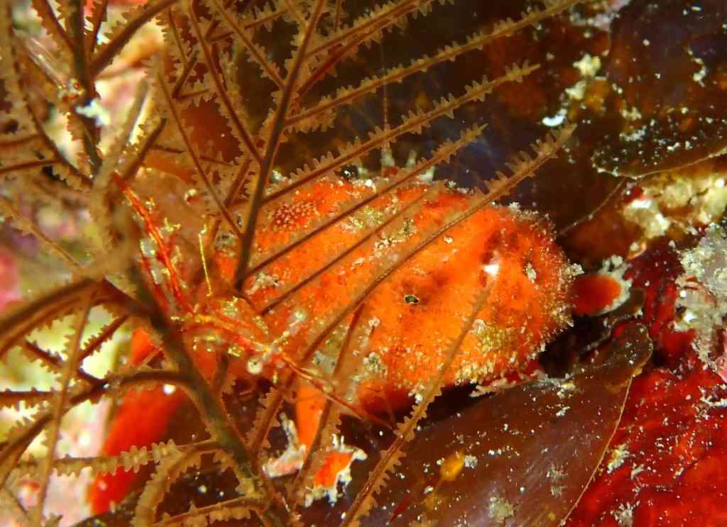 最後は、昨日に続き、ベニカエルアンコウYg!左手前に写っている赤い筋状の透明のは、アカスジカクレエビ。図らずしも、アカスジカクレエビとベニカエルアンコウがセットで撮れちゃいました!