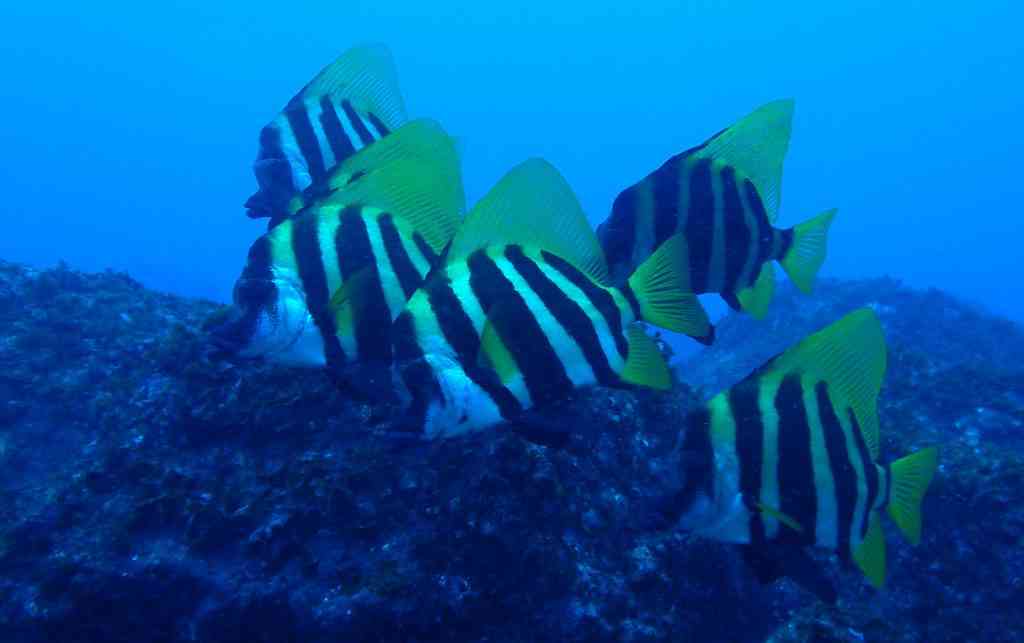 こちらは、私の大好きなテングダイ!群れていて、並んでくれると、チョーいい感じ☆長い背びれがカッコいいんです!うねりに身を任せ、ゆらゆらと泳いでました!