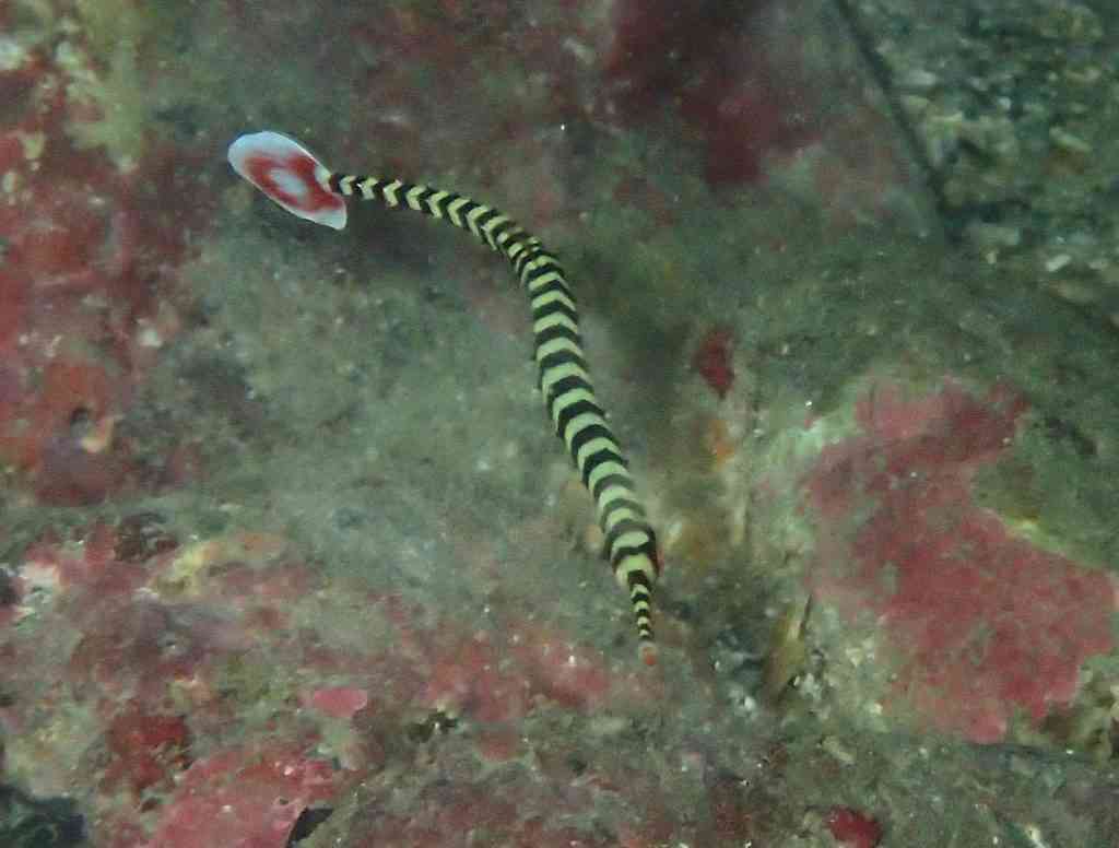 珍しい、オイランヨウジは、今日も同じ場所にいてくれました。シマシマの体が、逆に目立ってしまう気がするけど、海の中では、これで良きなのかな~?