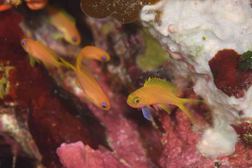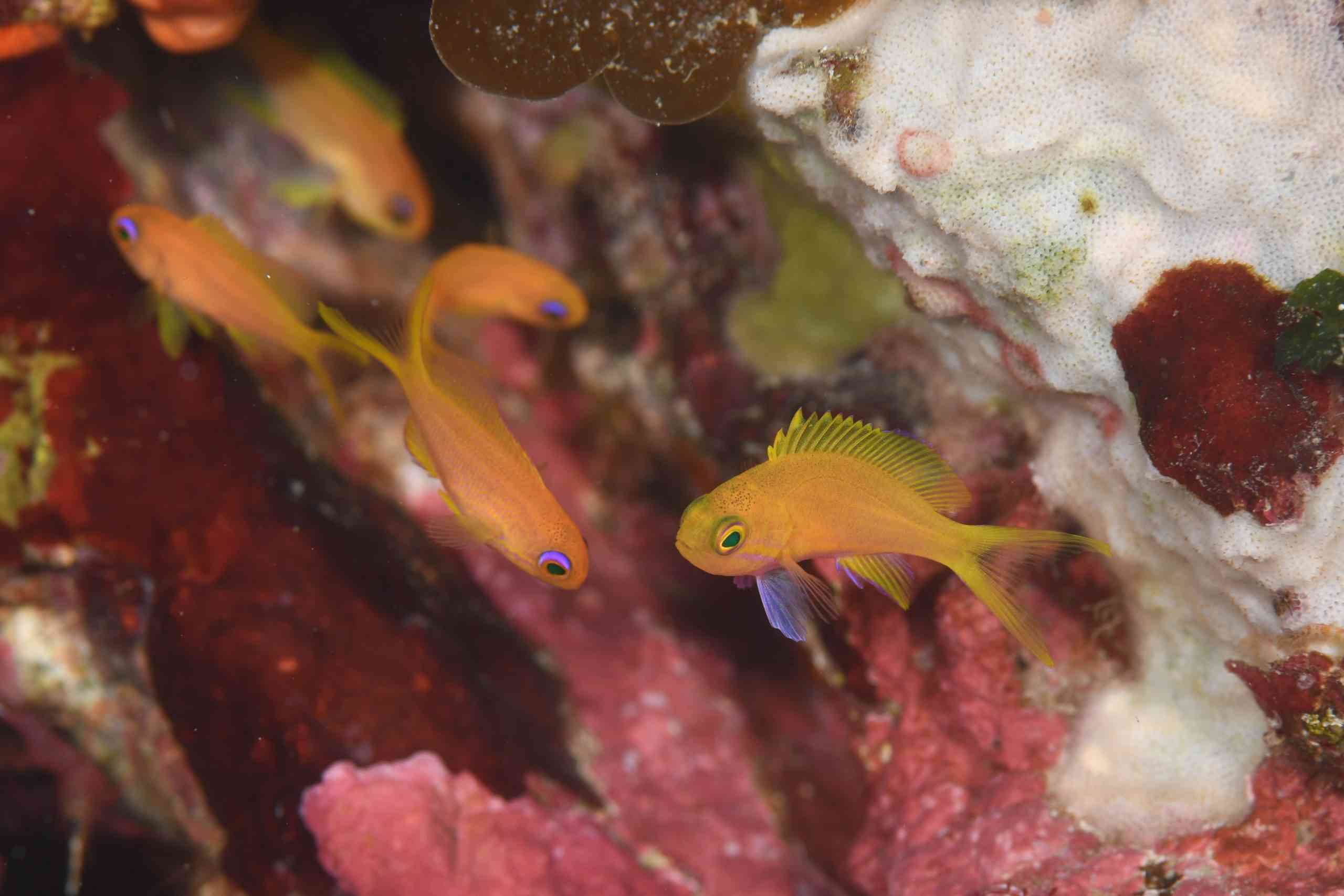 クダゴンベyg、アサヒハナゴイyg、コケギンポ(ケンカ)、アカハチハゼ、ゴイシウミヘビ、カゴカキダイ群れ、ネジリンボウ、ハナミノカサゴyg、ハタタテハゼ、ハチジョウタツ、ニラミギンポ