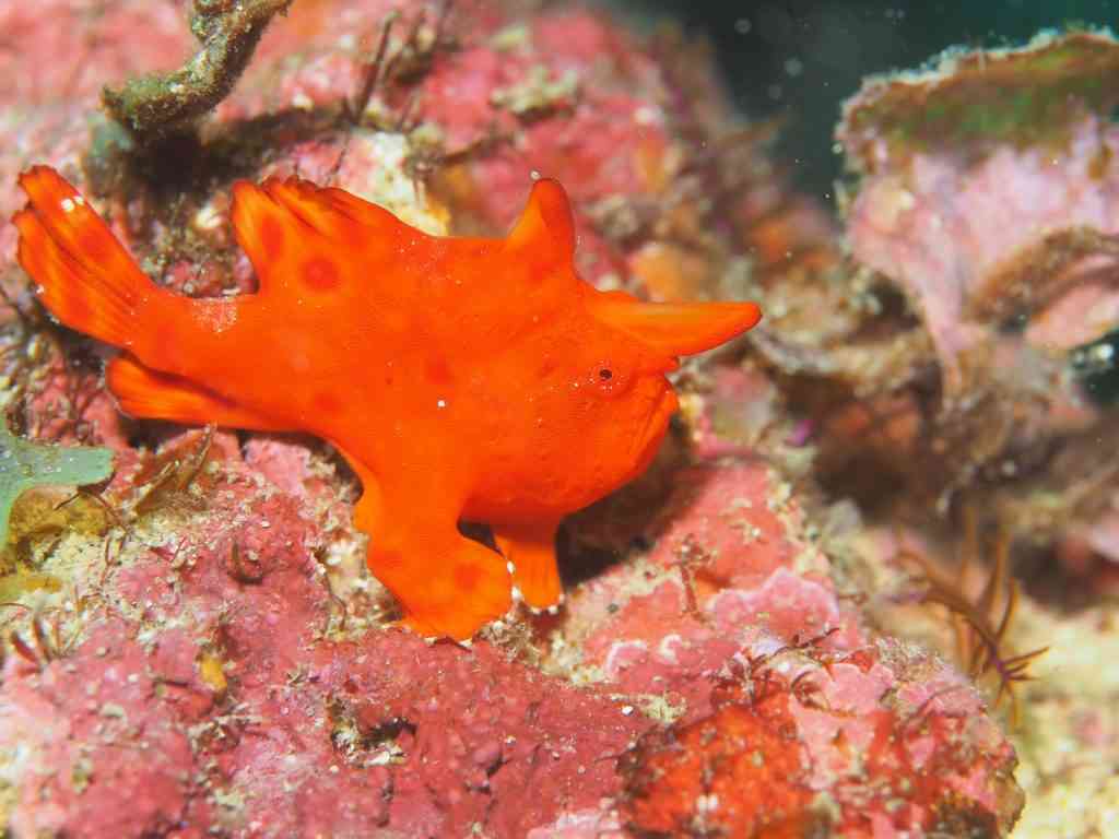 イロカエルアンコウの幼魚。絶対もういないだろうというところのが、いたらしいです。鮮やかな色だなー!