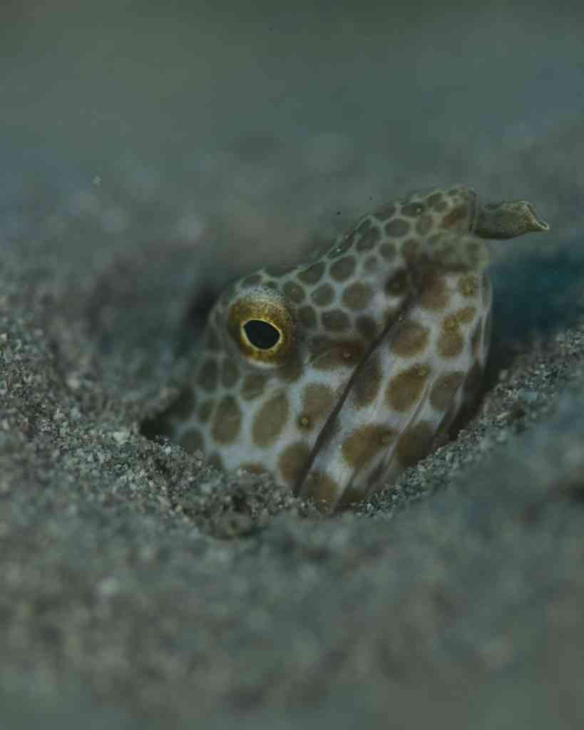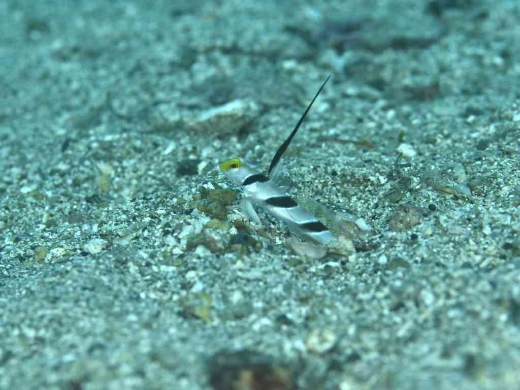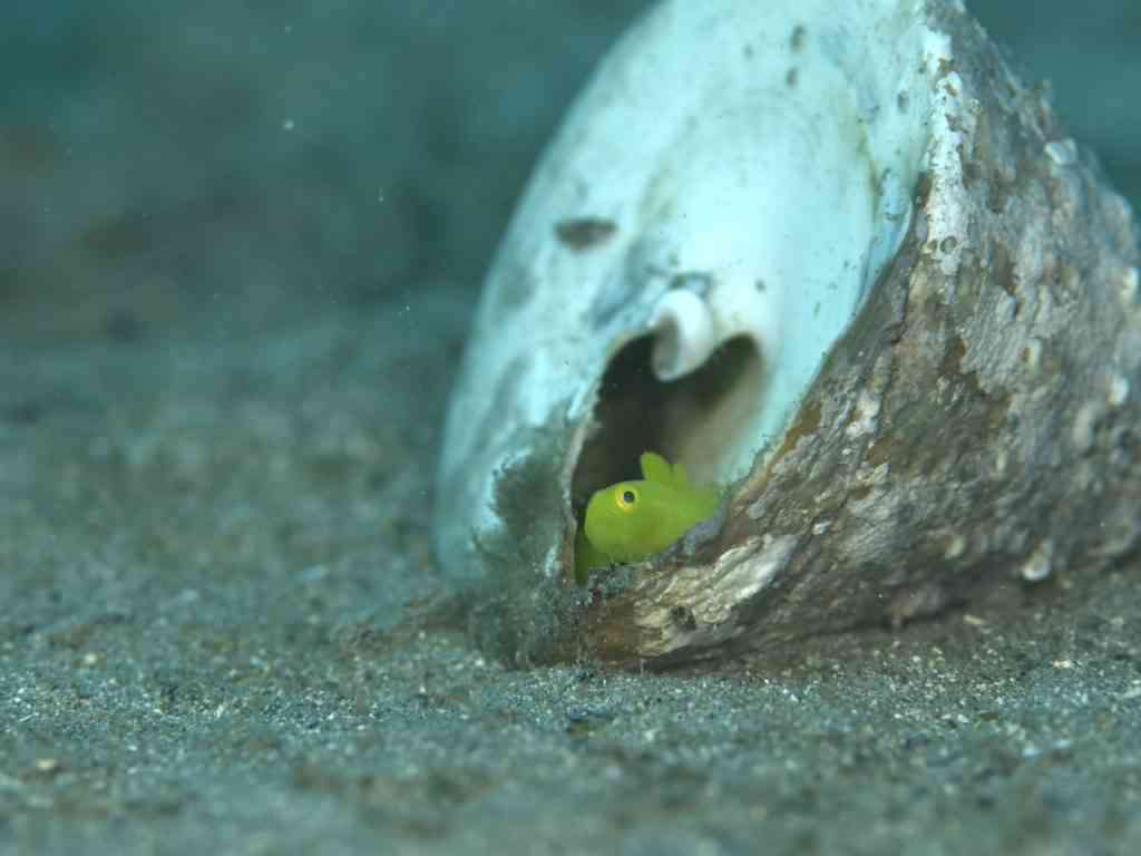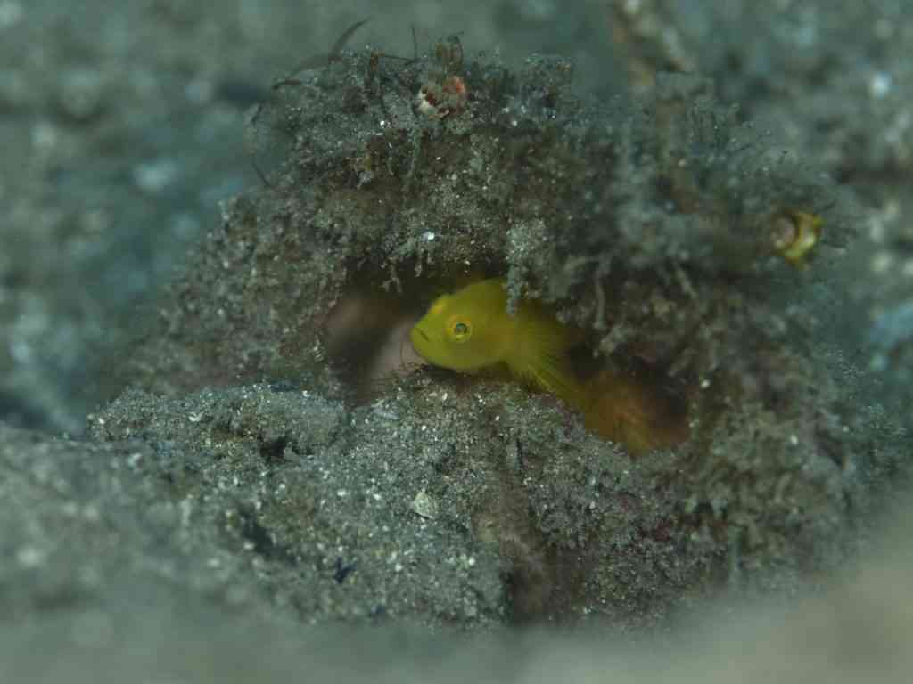 そして、皆さんお待ちかね!ミジンベニハゼ♡泥砂の中の、もはや何が家になっているのかよくわからない子