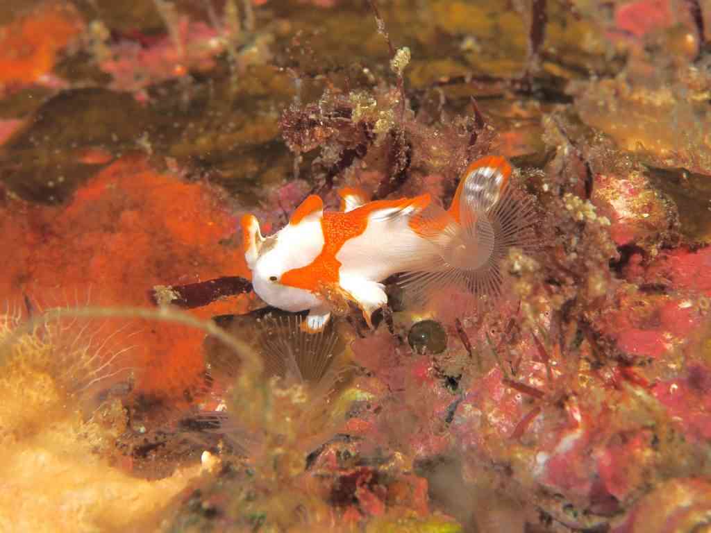 そして、ワレカラ、オレンジっぽい、棒人間みたいな。それから、お写真を拝見して初めて気づきましたが、サガミアメフラシ?も一緒に写ってますね!全然気づかなかった~!ボロボロに破れてきているアヤニシキがキレイ。