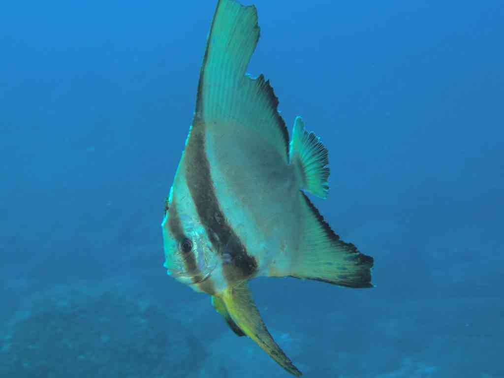今日は珍ダイバーさんにお写真をお借りしました!まずは、ボロボロのツバメウオ。一匹だけでうろうろしてました。病気なのか、襲われた外傷なのか、おでこはえぐれ、ヒレはあちこち破れて、見ていて気の毒な子でした。