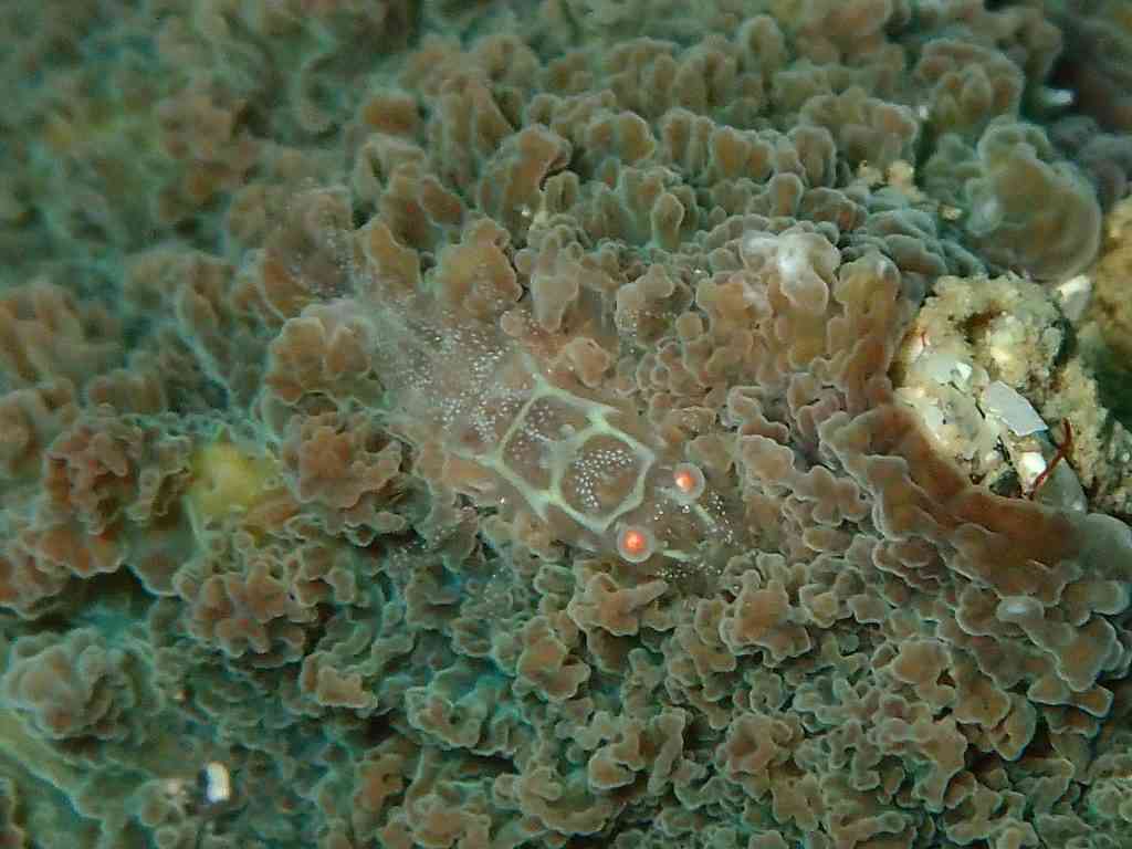 そして、こちらもリクエストのあったワライヤドリエビ。このサンゴがある場所へ案内したら、こちらもわずか3秒で、ご自身で見つけてらっしゃいました。私??もちろん、となりで「すごー!!」とニコニコしてました(笑)オレンジの目が美しいです。