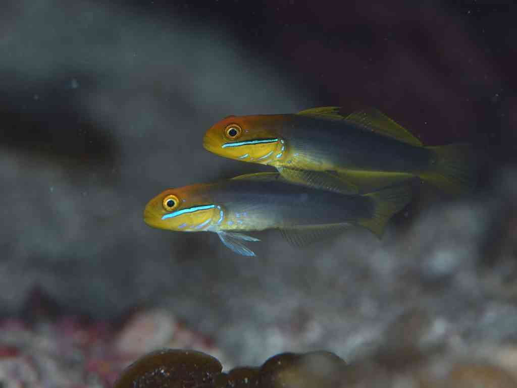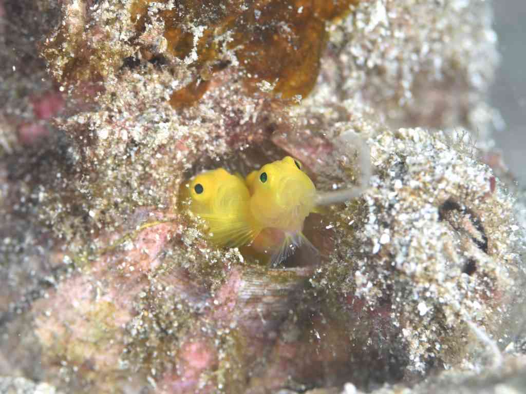 アカハチハゼのペア、かわいいですねぇ♡魚界のペアって、いつもこうして一緒に泳いでいるイメージ。なるべく1匹でいないほうが、お互いに安全なのでしょうね。それにしても、繁殖目的以外に、この魚たちにも「愛情」とか「親愛の情」とか、そういうものがあるのかどうか、魚たちにも聞いてみたいです。