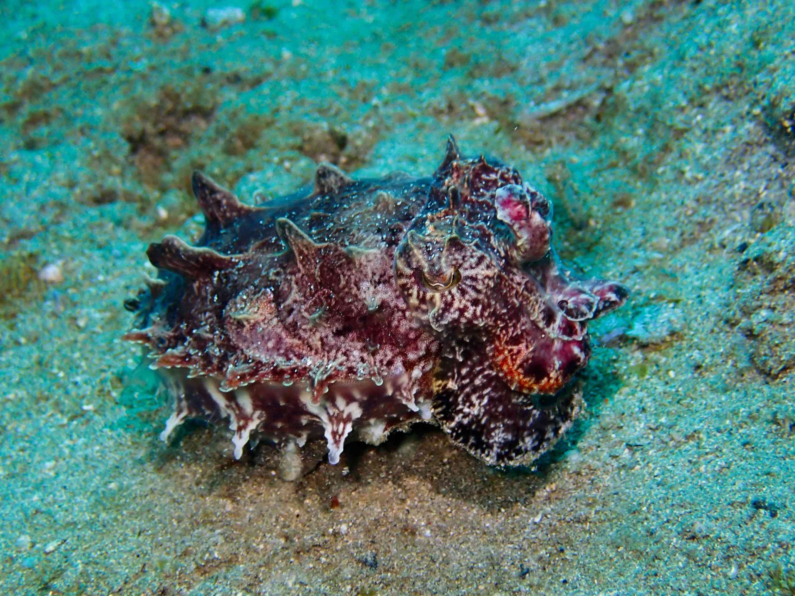そして、一昨日見つけた、ちびカエルアンコウ。隠れるのが好きみたいで、今日も顔しか見せてくれませんでした。ちっさい♡