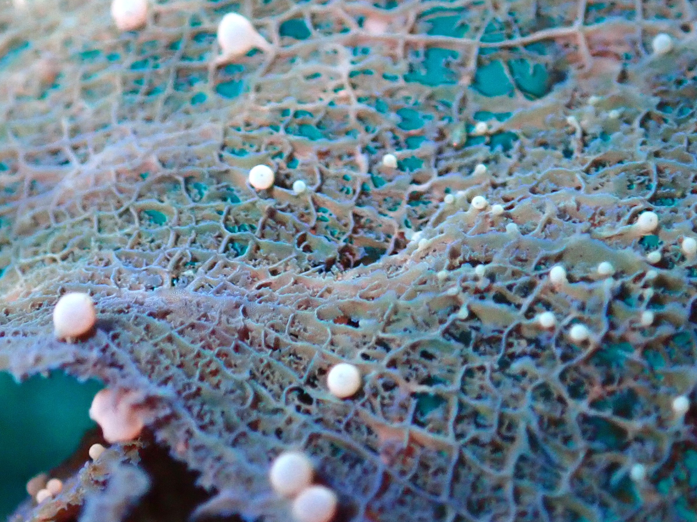 アヤニシキの卵、ギッシリ。しけて、ちぎれて飛んでいくのもよく見かけます・・・