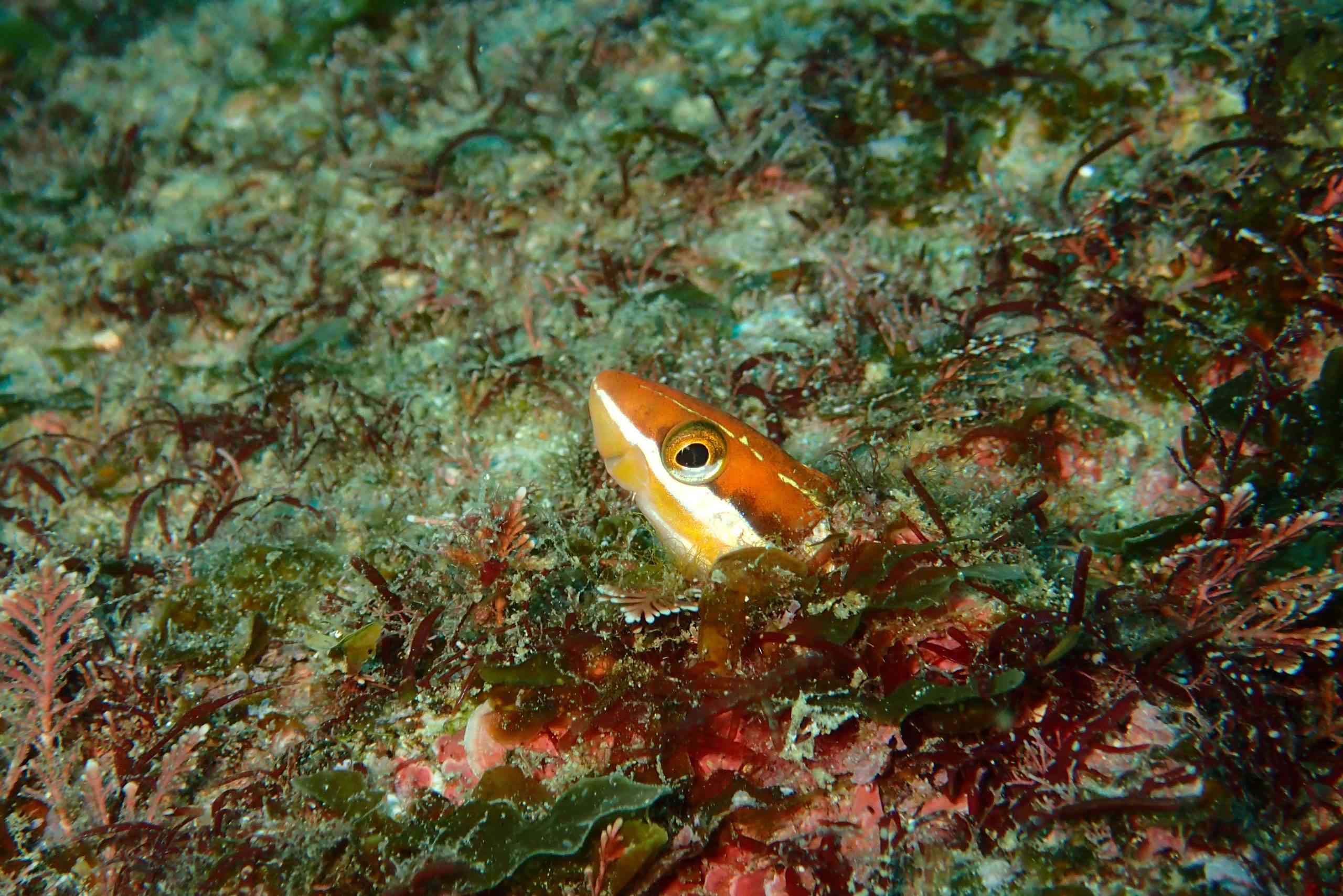ハゼは、イチモンジハゼ。時々紹介したくなる、壁張り付き系のハゼ。この子のように、光を当てても、寄っても、全然動かないでくれたら、ありがたいです(*^▽^*)
