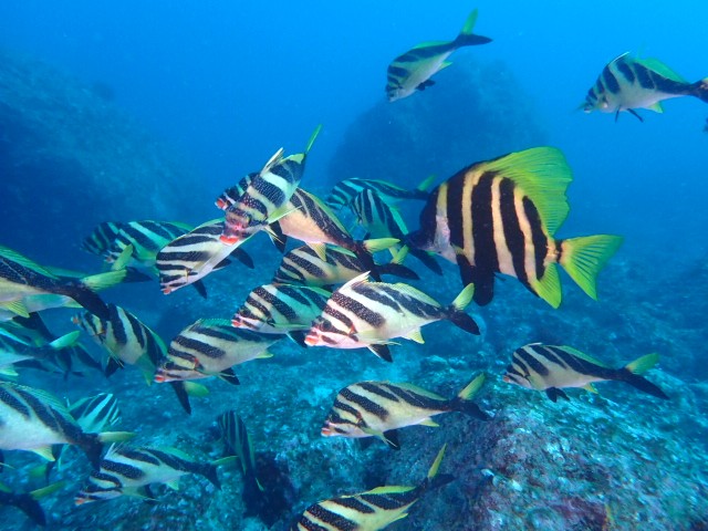 カゴカキダイ群れ、アオウミガメ、ジョーフィッシュ、ネジリンボウ、クダゴンベ、コケギンポ、アカハチハゼ、ヨメヒメジ、イサキ群れ、テングダイ、ハナゴイ群れ、ハタタテハゼ群れ
