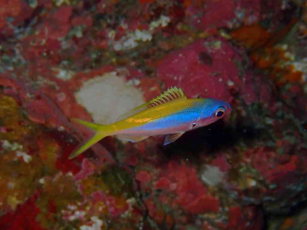 カゴカキダイ、アカハタ、ハナゴイ群れ、キンギョハナダイ群れ、アオスジテンジクダイ、クエ、ワモンダコ、ハタタテハゼ、コガネミノウミウシ、クダゴンベ、フエヤッコダイ、ハナゴンベ、ウデフリツノザヤウミウシ