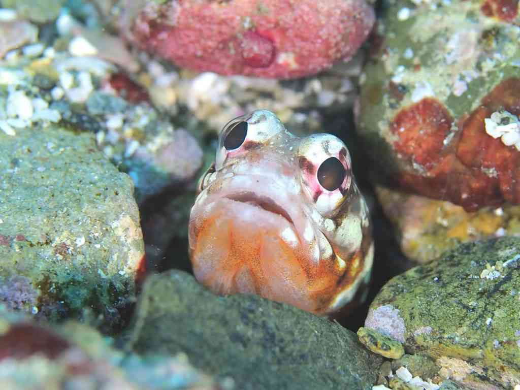 そして、遠目からだと、ネコみたいな目に見える、ヒメウツボ。シャイでなかなか出てこなかったですが、「まだいる?いる?ひゃあ~」みたいなやり取りがかわいいかったです。