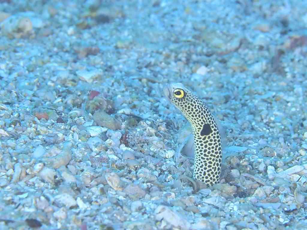 ボラ大群、ムチカラマツエビ、チンアナゴ、イソギンチャクモエビ、ヒメオオメアミ、ヒメウツボ、キンギョハナダイ群れ、コガネスズメダイ群れ、キホシスズメダイ