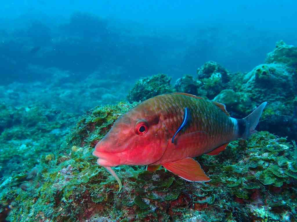 ニシキフウライウオ, キンギョハナダイ, ホウライヒメジ, イシヨウジ, アカシマシラヒゲエビ
