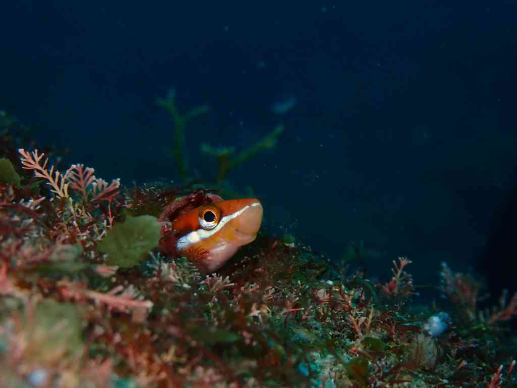 巣穴と縄張りを守るテンクロスジギンポ。