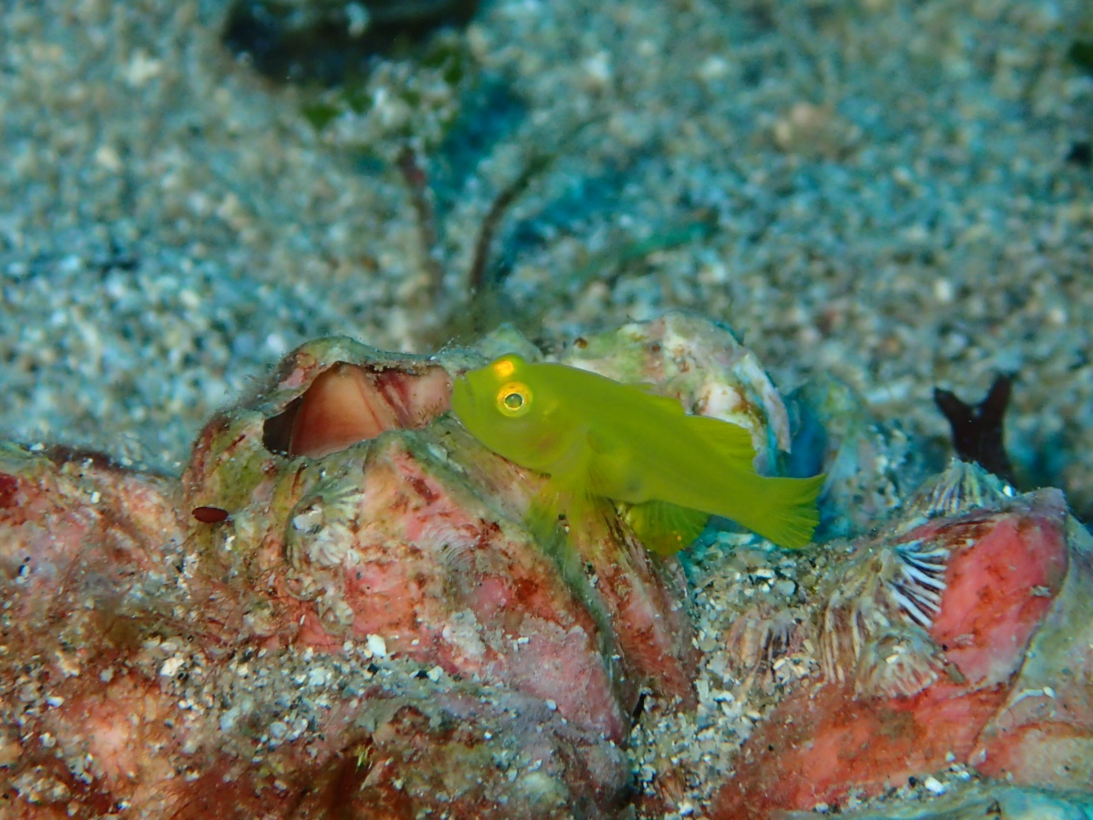 ガラスハゼ、ウミウシカクレエビ、キホシスズメダイ群れ、コガネスズメダイ群れ、タカサゴ群れ、メジナ群れ、キンギョハナダイ群れ、シテンヤッコ、ヒラメ、ガラスハゼ、ビシャモンエビ