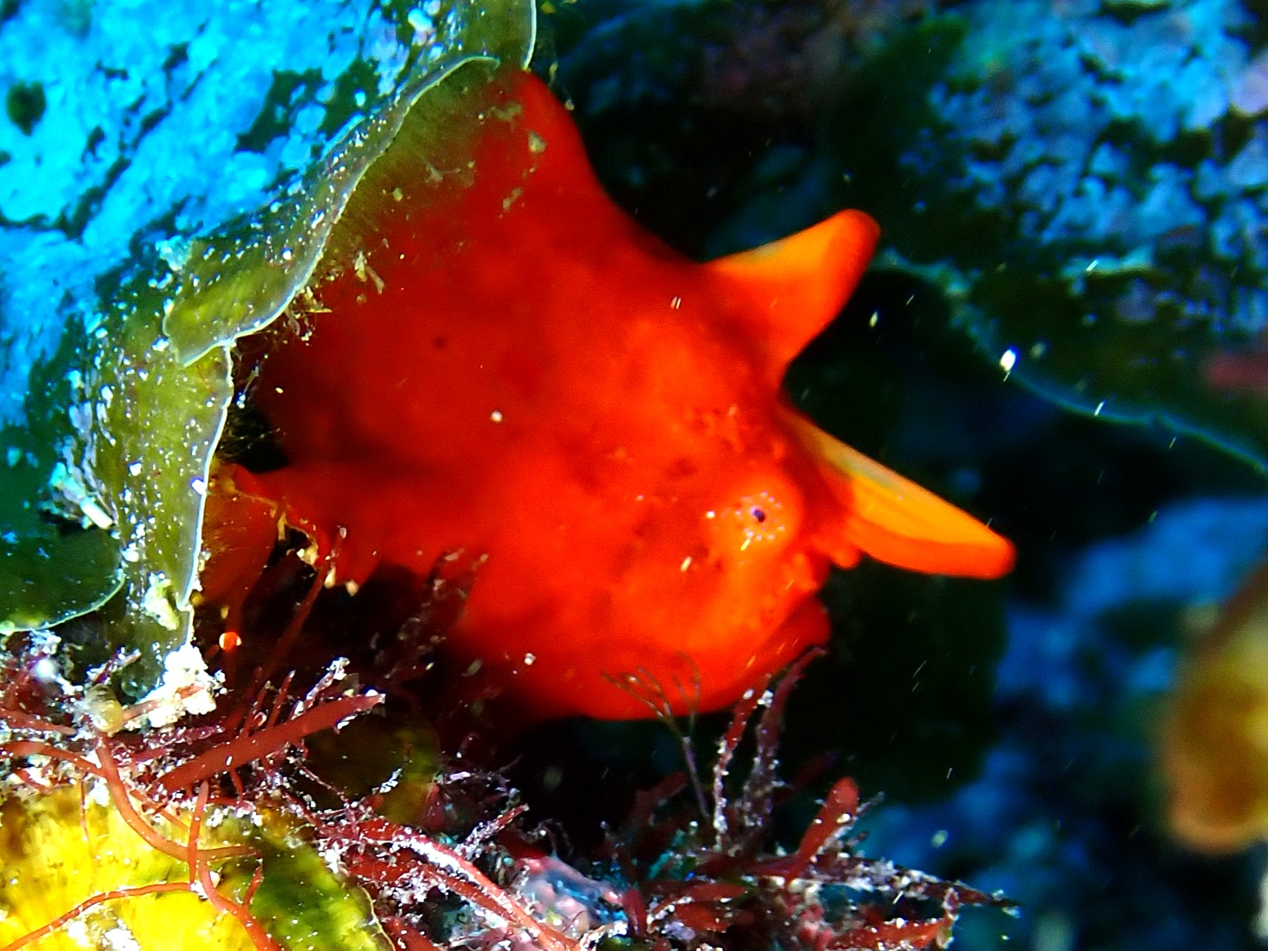 そして、赤鯱さんから教えていただいた、カエルアンコウも。濃いオレンジ色で、クマドリカエルアンコウとイロカエルアンコウと判別に当たって若干意見がわかれているカエルアンコウです。