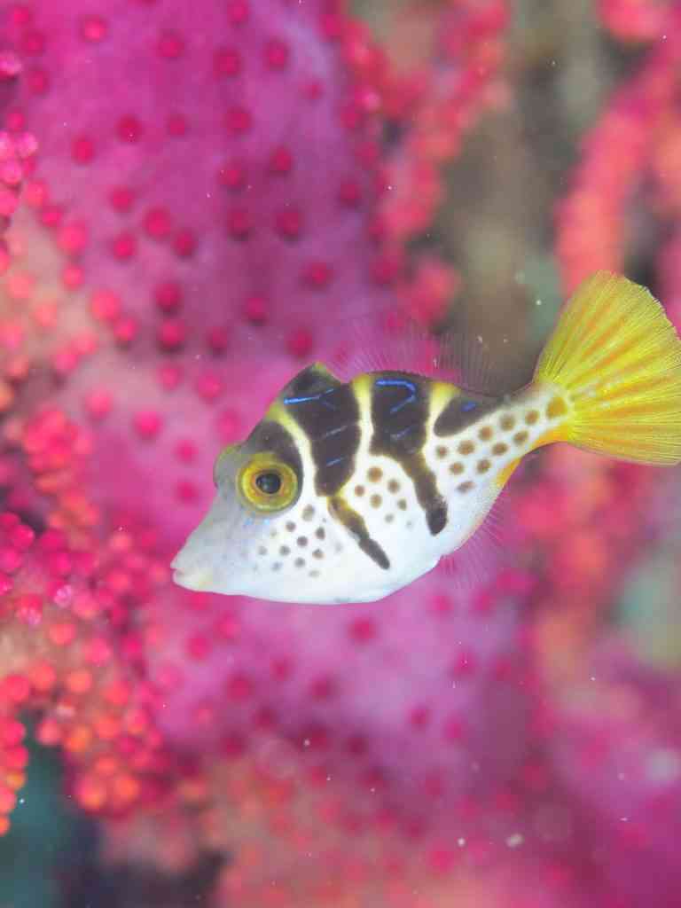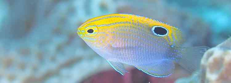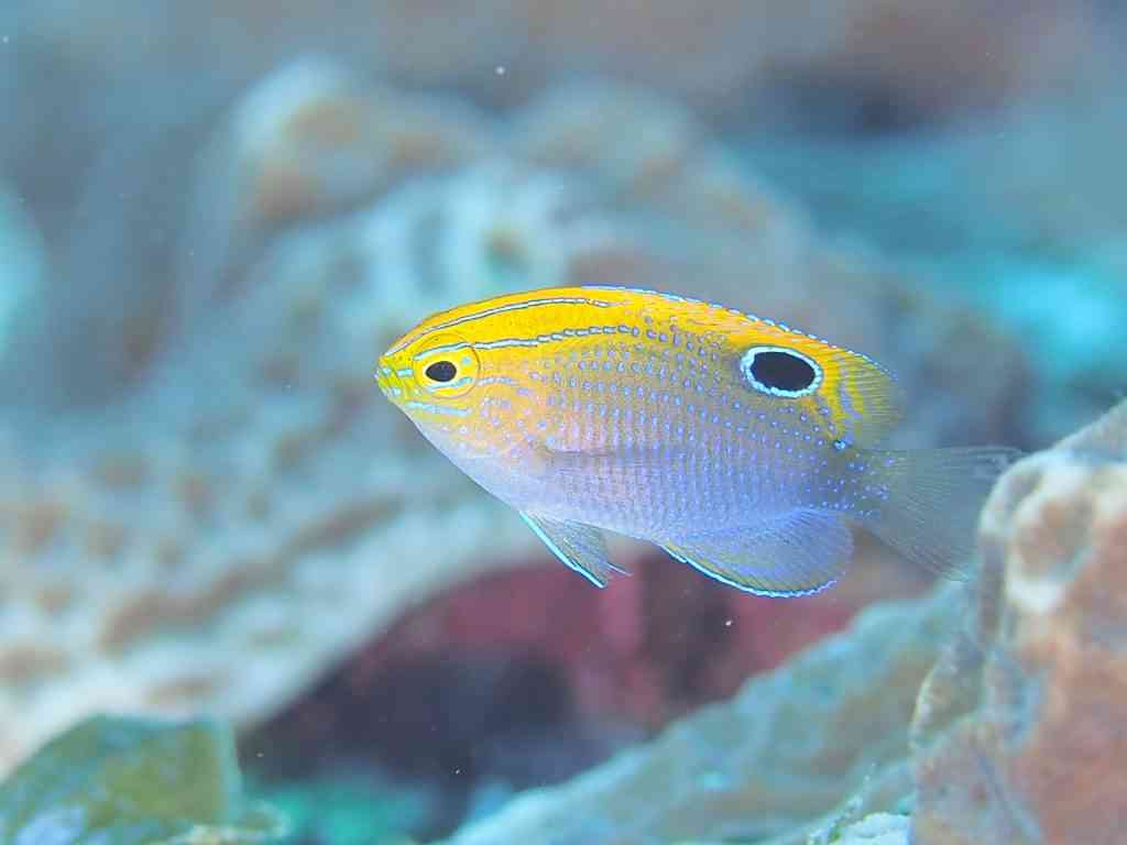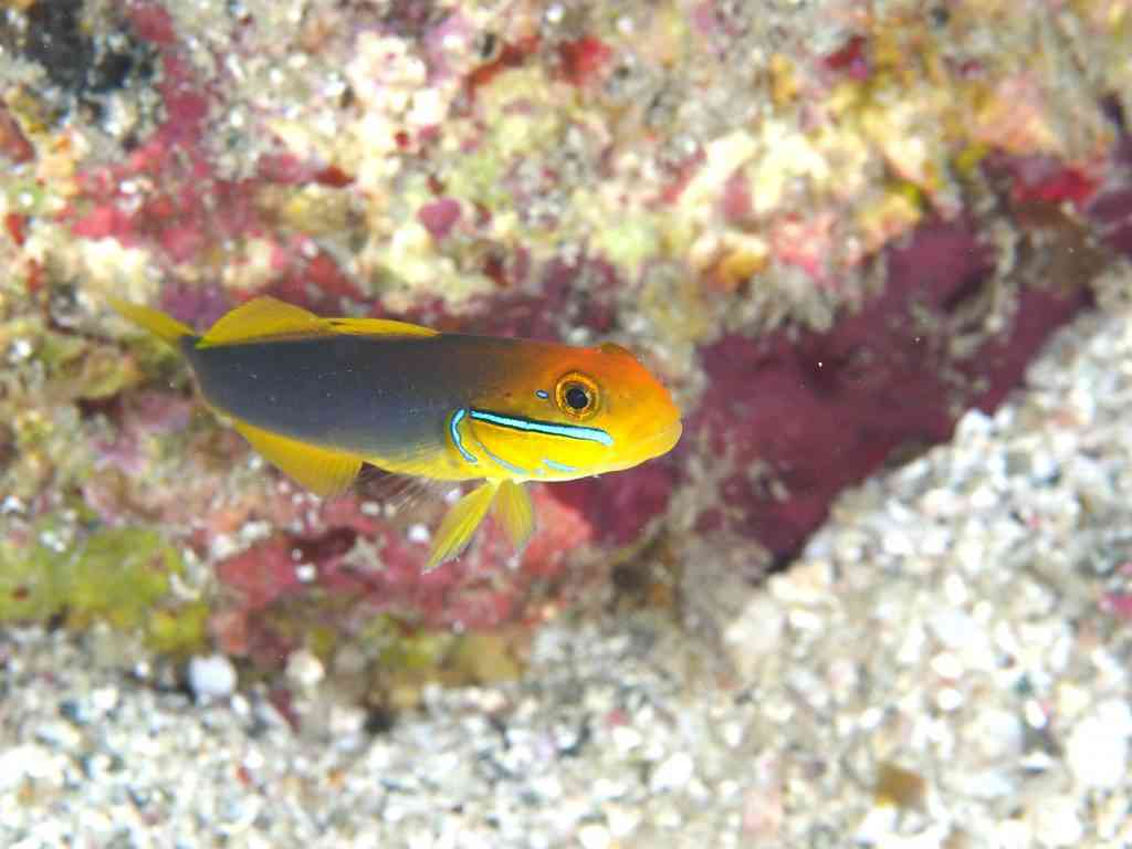 そして、こちら、アカハチハゼ!黄色い顔に水色のラインが入っているのが、なんともいえないかわいさ!