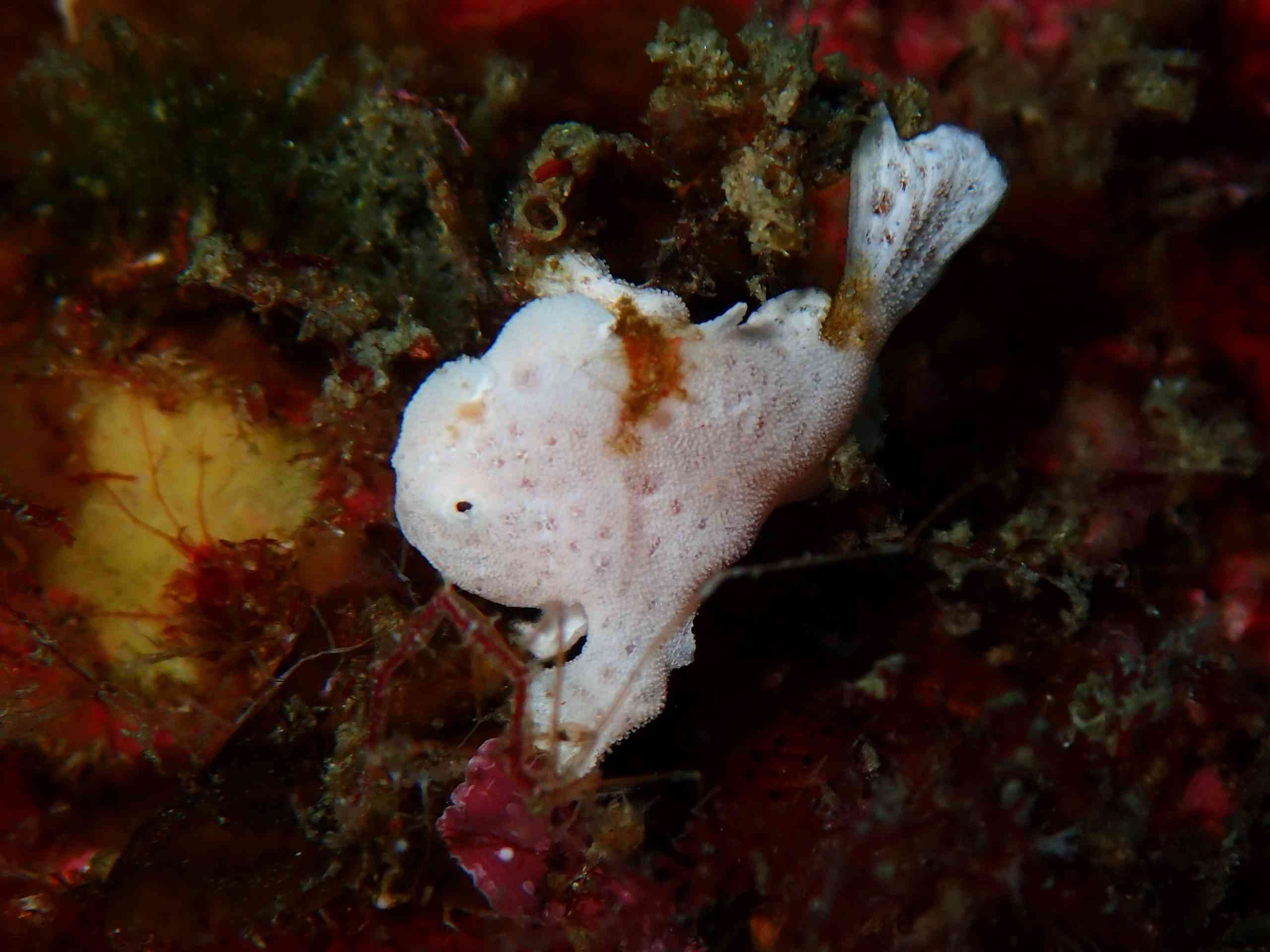 そして最後はこちら、ちびちびクマドリカエルアンコウYg!!5mmくらいの小さな子でした!!たまたま目が合って今日見つけました!!寒い中頑張った甲斐がありましたね~♡まだ体が小さいので、目が大きく見えますね!かわいい( *´艸`)