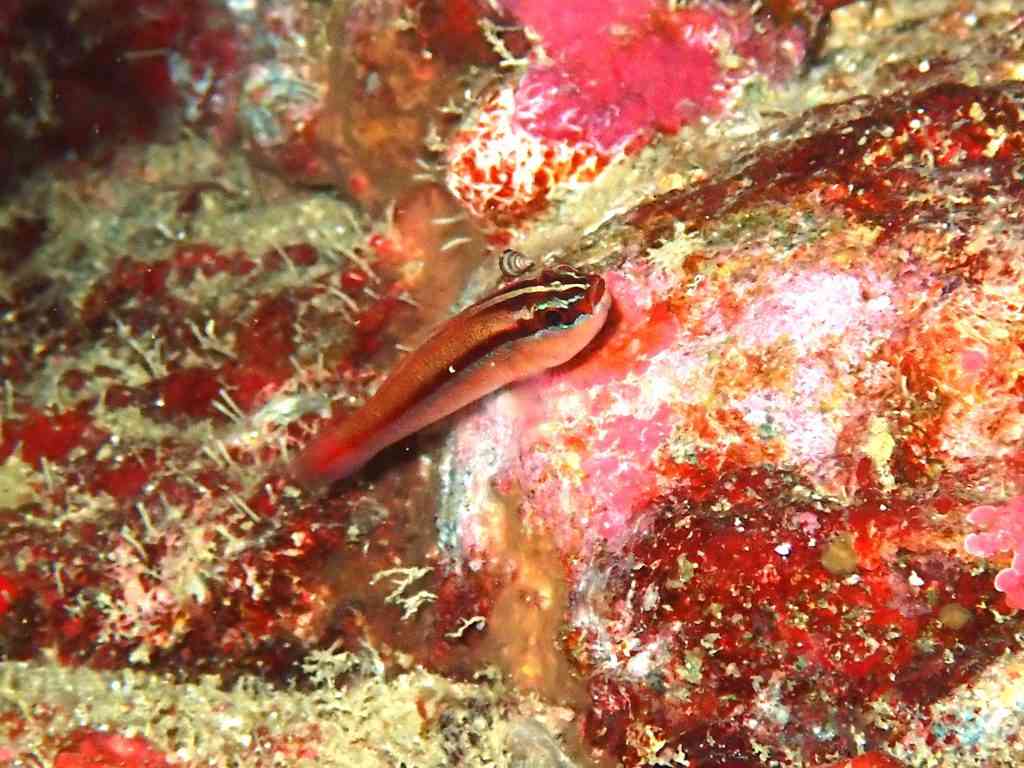 ハゼは、イチモンジハゼ。時々紹介したくなる、壁張り付き系のハゼ。この子のように、光を当てても、寄っても、全然動かないでくれたら、ありがたいです(*^▽^*)