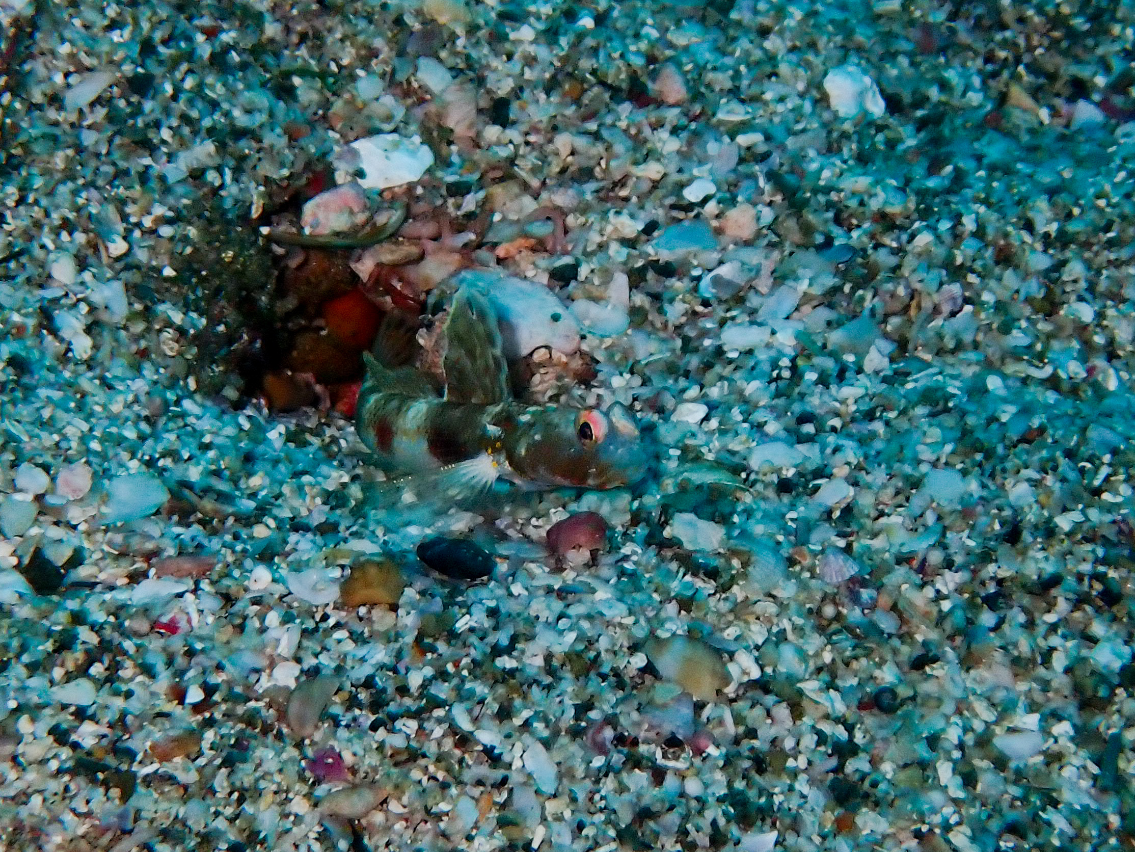 チンアナゴ、ヤシャハゼ、ヒレナガネジリンボウ、コシオリエビ属の一種、モンツキベラYg、アオヤガラYg、アオウミウシ、ミカドウミウシの卵