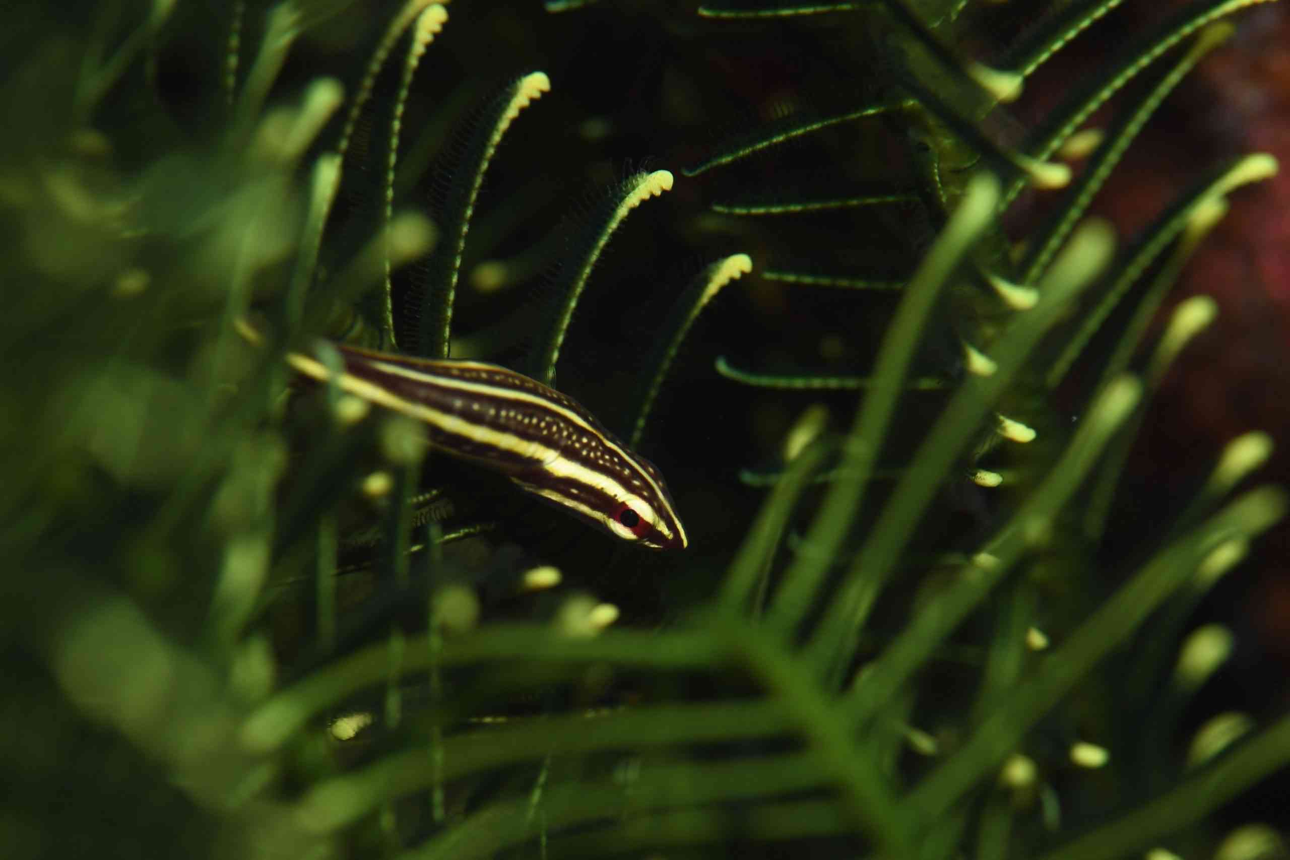 ハゼは、イチモンジハゼ。時々紹介したくなる、壁張り付き系のハゼ。この子のように、光を当てても、寄っても、全然動かないでくれたら、ありがたいです(*^▽^*)