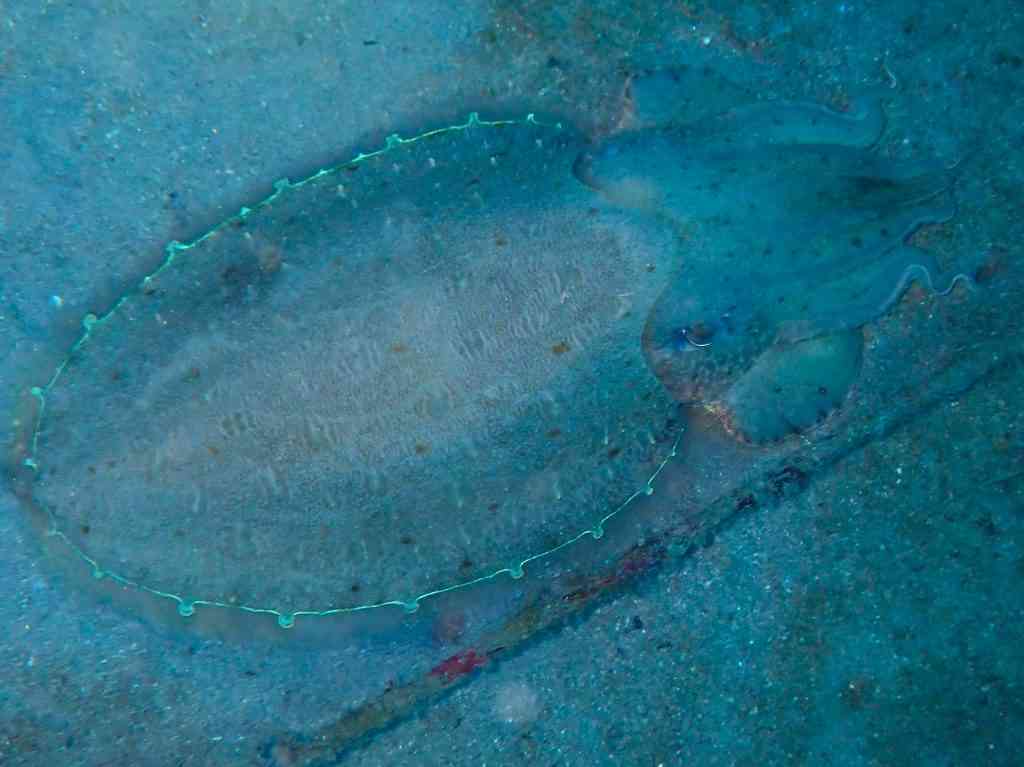 砂地では、大きなイカもいたらしいです。私は見ていないですが、「ごま」さんがお写真撮っていてくれました。カミナリイカ?かな?聞いた話だと、2lのペットボトルくらいの長さがあったようですよ!